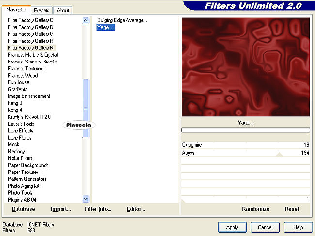 Effetti>Plugins>Filters Unlimited 2.0 - Filter Factory Gallery N - Yage: