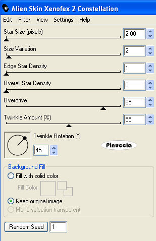 Ripeti l'Effetto Constellation, con gli stessi settaggi, ma cliccando una volta su Random Seed.