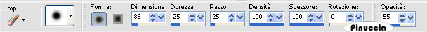 Attiva lo strumento Gomma con i seguenti settaggi: