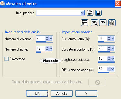 Effetti>Effetti di trama>Trama - seleziona la trama blgr001 con i seguenti settaggi.