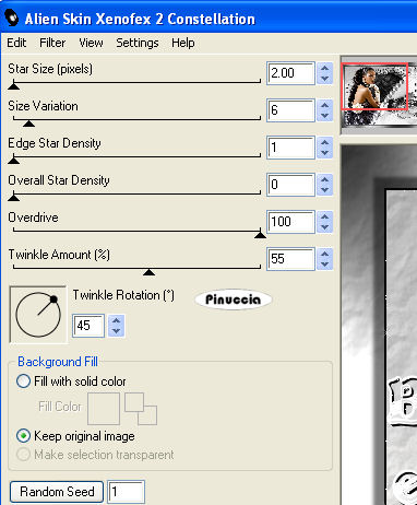 Ripeti l'Effetto Constellation, con gli stessi settaggi, ma cliccando due volte su Random Seed.
