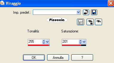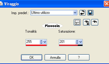 Regola>Tonalità e saturazione>Viraggio, con i settaggi precedenti.