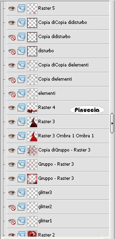 Chiudi i livelli Glitter1, "elementi" e "disturbo" e apri il livello Glitter2 e i livelli della prima copia di "elementi" e della prima copia di "disturbo".