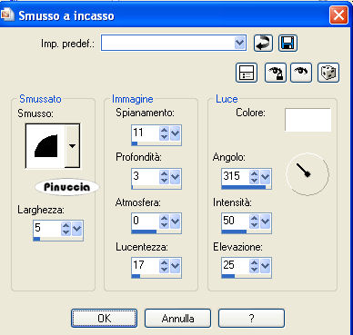 Effetti>Effetti 3D>Smusso a incasso, con i settaggi precedenti.