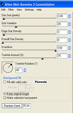 Ripeti l'Effetto Constellation con gli stessi settaggi, ma cliccando una volta su Random Seed.
