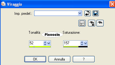 Regola>Tonalità e saturazione>viraggio, con i settaggi precedenti.