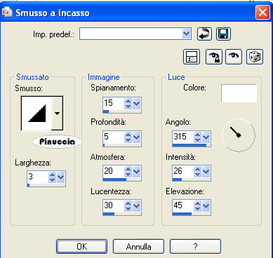 Effetti>Effetti 3D>Smusso a incasso, con i settaggi precedenti.