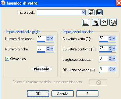 Effetti>Effetti di trama>Mosaico di vetro, con i settaggi precedenti.