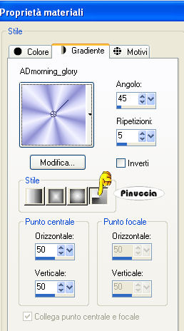 Passa il colore di primo piano a Gradiente, e seleziona il gradiente ADMorning_glory con i seguenti settaggi.