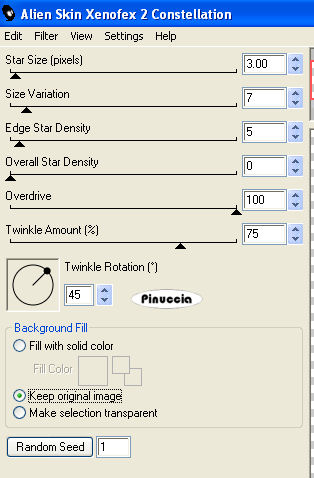 Attiva il livello xenofex2 e ripeti l'Effetto Constellation, cliccando una volta su Random Seed.