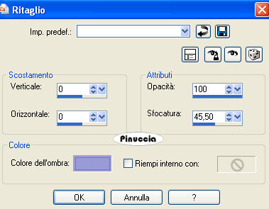 Effetti>Plugins>Graphics Plus - Cross Shadow, con i settaggi standard.