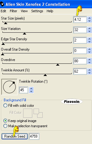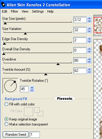 Ripeti l'Effetto Constellation, riportando Star Size a 3,12 e cliccando su Random Seed.