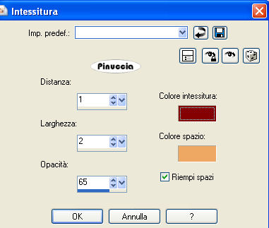 Effetti>Effetti di trama>Intessitura (colore intessitura: colore di sfondo; colore spazio: colore di primo piano).