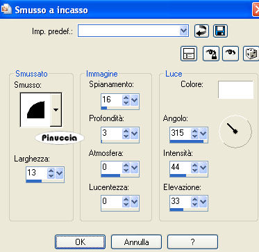Effetti>Effetti 3D>Smusso a incasso, con i settaggi precedenti.