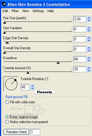 Ripeti l'Effetto Constellation con gli stessi settaggi, ma cliccando una volta su Random Seed.