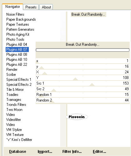 Effetti>Plugins>Filters Unlimited 2.0 - Plugins AB 07 - Break Out Randomly: