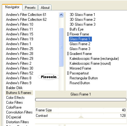 Effetti>Plugins>Filters Unlimited 2.0 - Buttons & Frames - Glass Frame 1: