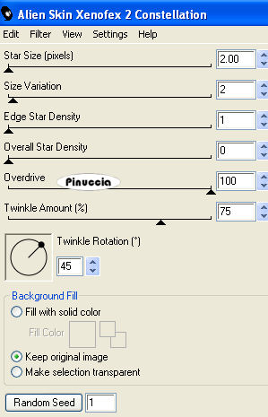 Ripeti l'Effetto Constellation, con gli stessi settaggi, ma cliccando una volta su Random Seed.