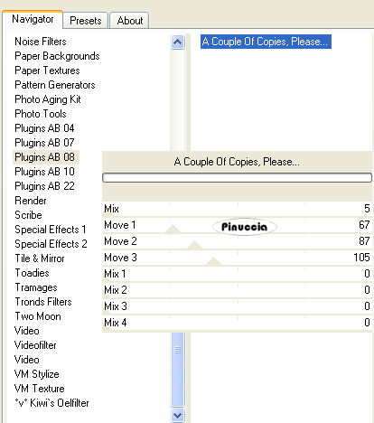 Effetti>Plugins>Filters Unlimited 2.0 - Plugins AB 08 - Couple of Copies, Please: