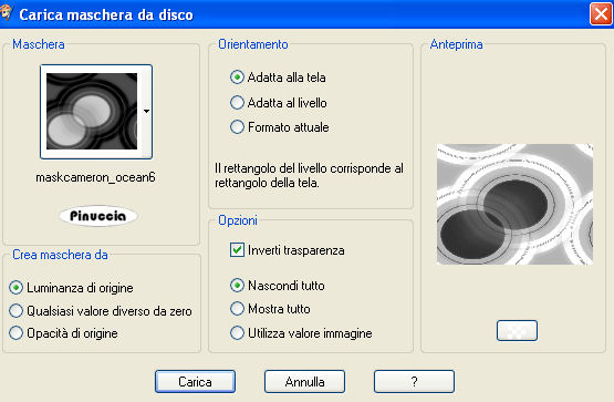 Seleziona la maschera maskCris15, con i seguenti settaggi: