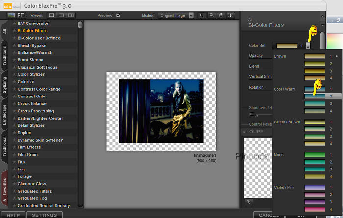 seleziona Bi-Color Filter sulla colonna a sinistra;