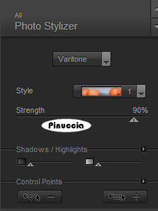 Regola>Tonalità e saturazione>Viraggio, con i settaggi precedenti.