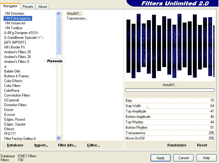 Effetti>Plugins>Filter Unlimited - VM Extravaganza - Shoutin: