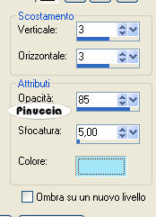 Effetti>Effetti 3D>Sfalsa ombra, con i seguenti settaggi, colore #a3e5f9.