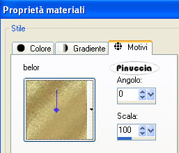Passa il colore di primo piano a Motivi e seleziona il motivo oro con i seguenti settaggi.
