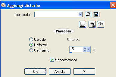 Regola>Aggiungi/Rimuovi disturbo>Aggiungi disturbo, con i settaggi precedenti.