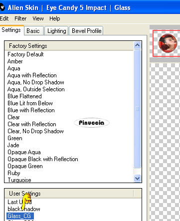 Effetti>Plugins>Alien Skin Eye Candy 5 Impact - Glass: