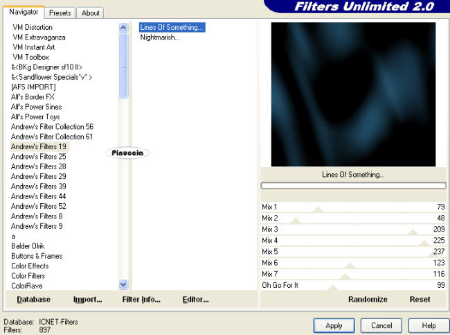 Effetti>Plugins>Filters Unlimited - Andrew's Filter 19 - Lines Of something - 2 volte.