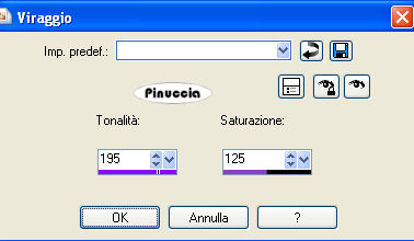 Regola>Tonalità e saturazione>Viraggio, con i settaggi precedenti.