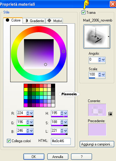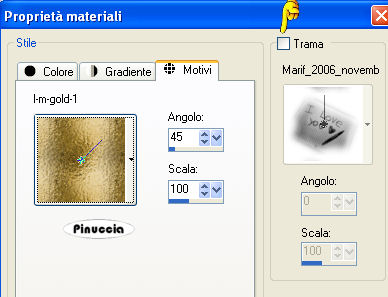 Passa il colore di primo piano a Motivi e seleziona il motivo oro I-m-gold-1 (non dimenticare di deselezionare la Trama):