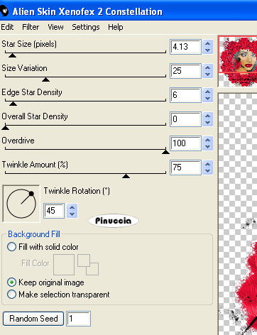 Ripeti l'Effetto Constellation con gli stessi settaggi, ma cliccando una volta su Random Seed.