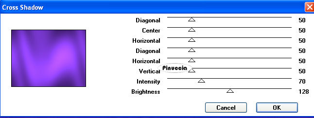 Su tutti e tre i livelli: Effetti>Plugins>Graphics Plus - Cross Shadow, con i settaggi precedenti.