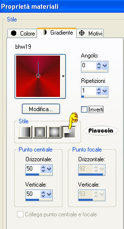 Passa il colore di primo piano a Gradiente e seleziona il gradiente bhw19 con i seguenti settaggi.