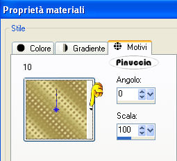 Passa il colore di primo piano a Motivi, apri il menu e tra i motivi disponibili troverai anche le immagini aperte in PSP, tra queste il motivo "10". Seleziona questo motivo con i seguenti settaggi.