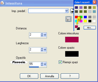 colore intessitura: colore di primo piano; colore spazio: nero.
