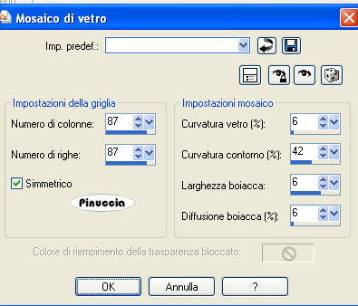 Effetti>Effetti di trama>Mosaico di vetro, con i settaggi precedenti.