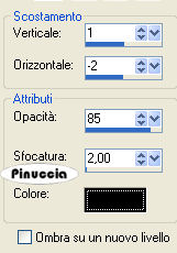 Effetti>Effetti 3D>Sfalsa ombra, con i seguenti settaggi, colore nero.