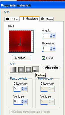 Imposta il colore di primo piano su Gradiente e seleziona il gradiente tiff74 con i seguenti settaggi.