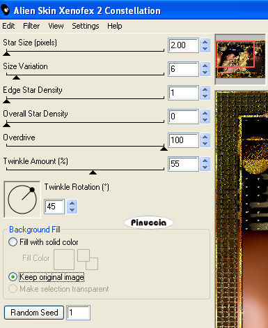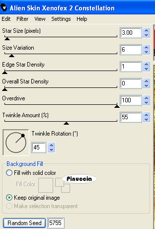 Ripeti l'Effetto Constellation, cambiando Star Size con 3.00 e cliccando due volte su Random Seed.