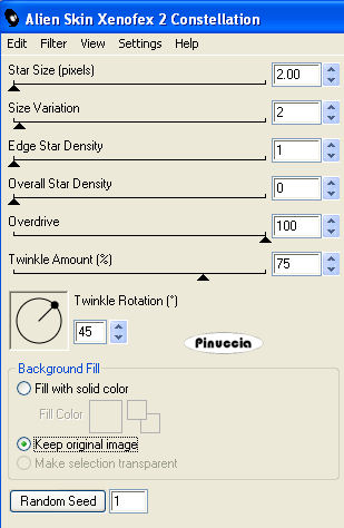 Ripeti l'Effetto Constellation, cambiando Star Size con 3,00 e cliccando una volta su Random Seed.