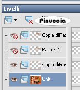 Chiudi il livello "testo" e apri il livello della prima copia di testo.