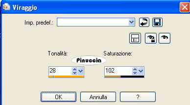 Regola>Tonalità e saturazione>Viraggio, con i settaggi precedenti.
