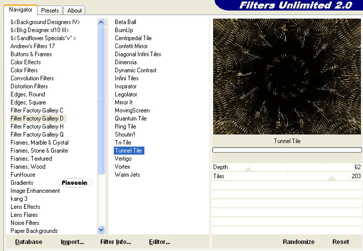 Effetti>Plugins>Filters Unlimited 2.0 - Filter Factory Gallery D - Tunnel Tile.