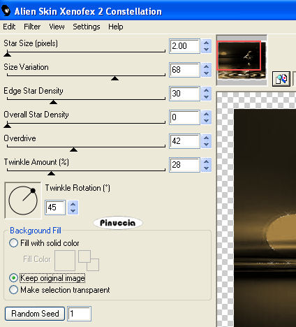 Ripeti l'Effetto Constellation con gli stessi settaggi, ma cliccando una volta su Random Seed.