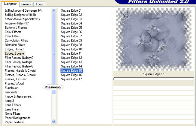 Effetti>Plugins>Filters Unlimited - Edges Square - Square Edge 15.