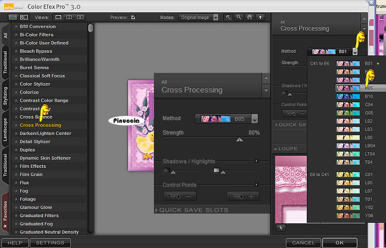 seleziona Cross Processing a sinistra e, a destra, e seleziona "Method B05".